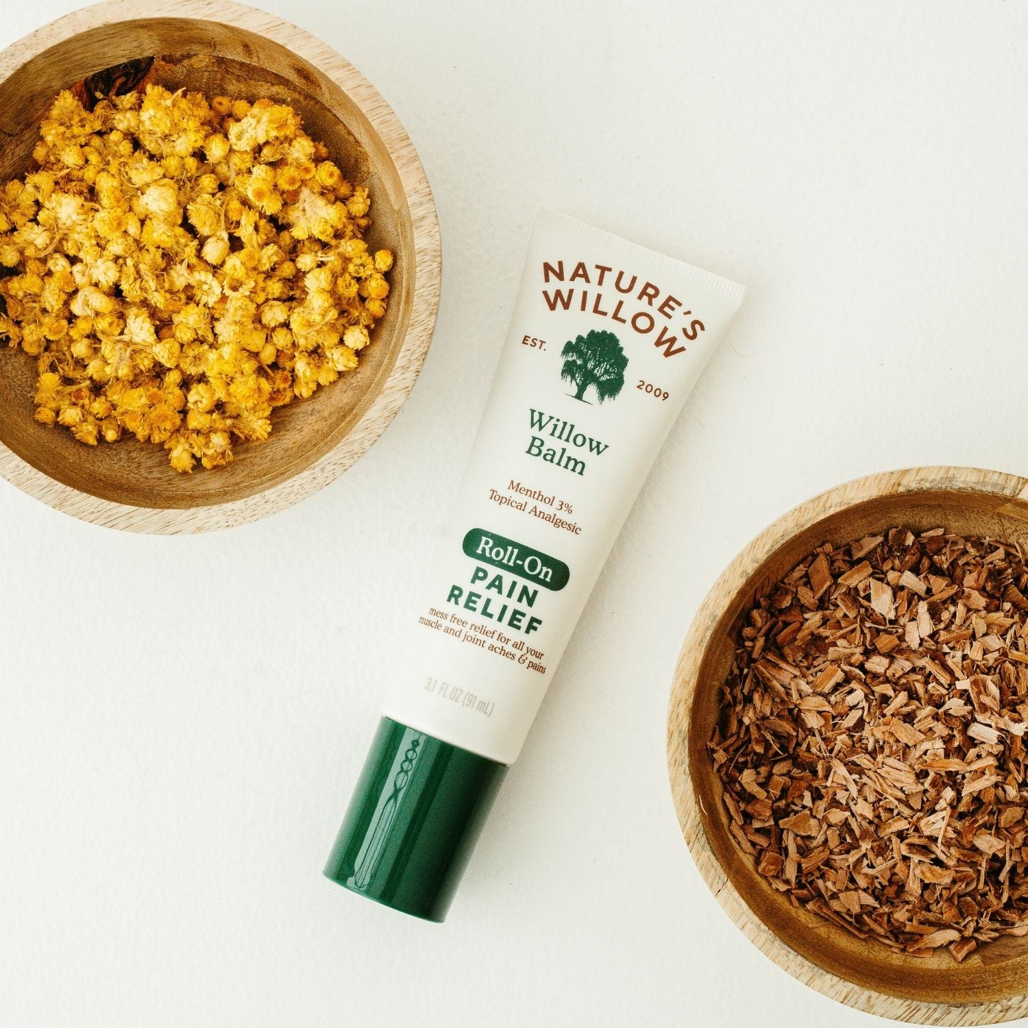 White Willow Bark is an ancient pain reliever that absorbs quickly to reduce aches and pains while menthol cools the skin.